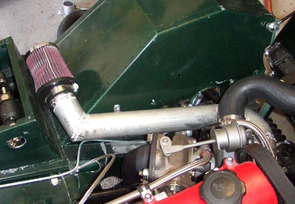 I fabbed an aluminum tube intake to draw air into the turbocharger |