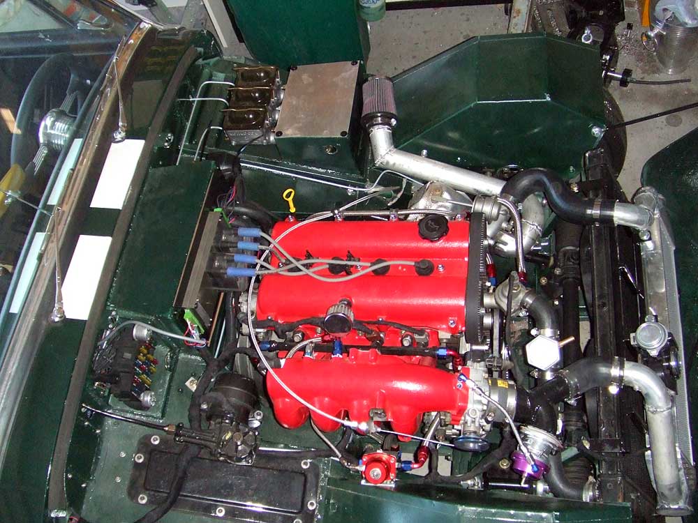 Some pictures of the engine compartment. The cover is still off the fuse block because the wires that hook the Electromotive Tec 2 to the laptop are running through the firewall. |